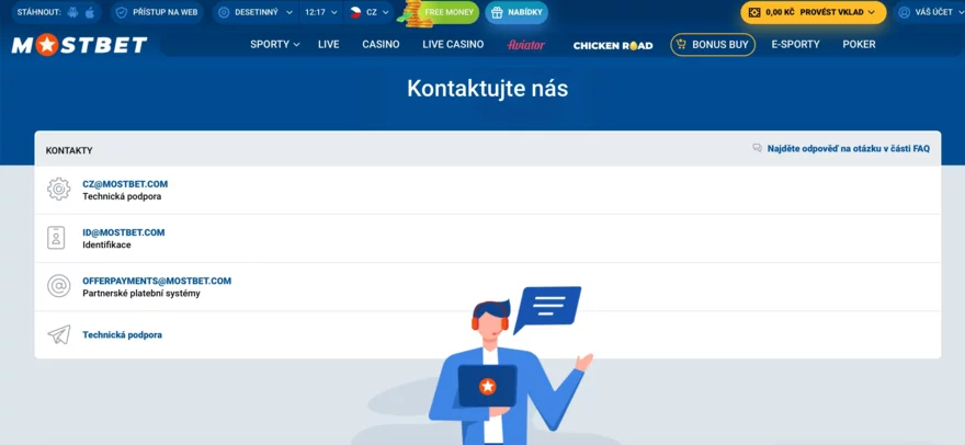 Pro různé typy problémů slouží specializované adresy. Technické a obecné dotazy zasílejte na CZ@MOSTBET.COM, a ověřování identity (KYC) na ID@MOSTBET.COM. E-mail umožňuje přikládat screenshoty a soubory ke zpřesnění problému.