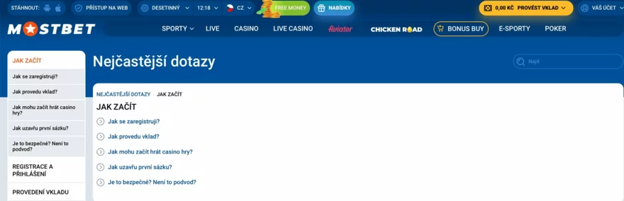 Podobně lze řešit technické chyby či dotazy na hraní. Pro rychlé odpovědi Mostbet poskytuje obsáhlou sekci FAQ na svém webu. Zde najdete návody na registraci, vklady/výběry, bonusy apod., aniž byste museli čekat na odpověď operátora.