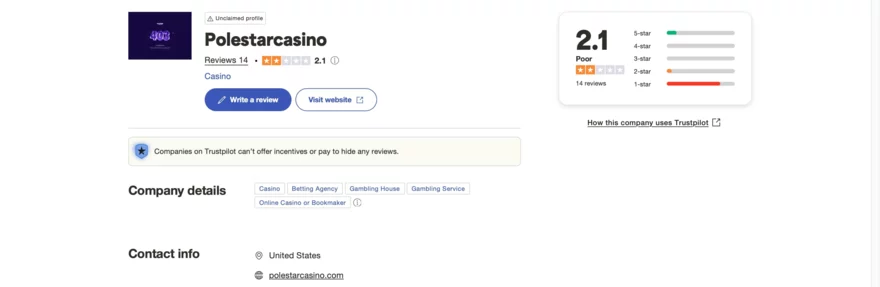 PoleStar Casino je provozováno společností Rabidi N.V., která má v online hazardním průmyslu dlouholetou zkušenost a vlastní několik dalších známých casin, jako jsou Boomerang, QuickWin nebo 7Signs. Casino bylo založeno v roce 2023 a působí zatím krátce, ale díky silné mateřské společnosti si rychle vybudovalo základnu hráčů. Na recenzních stránkách, jako je AskGamblers, má casino hodnocení 6/10, což značí solidní důvěryhodnost. Na Trustpilot je skóre o něco nižší, konkrétně 2,1/5, což odráží některé stížnosti hráčů. Tyto recenze se však týkají převážně provozních problémů, jako je zpoždění výběrů nebo horší komunikace se zákaznickou podporou, nikoli podvodů nebo manipulace s hrami. Společnost však stížnosti řeší konstruktivně a aktivně komunikuje s hráči, což je důležitý faktor pro její důvěryhodnost.