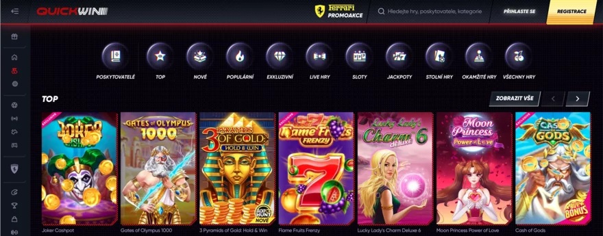 QuickWin Casino nabízí impozantní výběr her od předních světových providerů, což z něj činí atraktivní destinaci pro všechny typy hráčů. S více než 9 000 hrami, včetně slotů, stolních her, live casina a netradičních her, je zde opravdu z čeho vybírat. Casino spolupracuje s více než 60 softwarovými vývojáři, mezi které patří takové špičky jakoNetEnt, Evolution Gaming, Pragmatic Play, Play’n GO, Yggdrasil a Big Time Gaming. Tato spolupráce zajišťuje vysokou kvalitu grafického zpracování, plynulost hraní a férovost her.