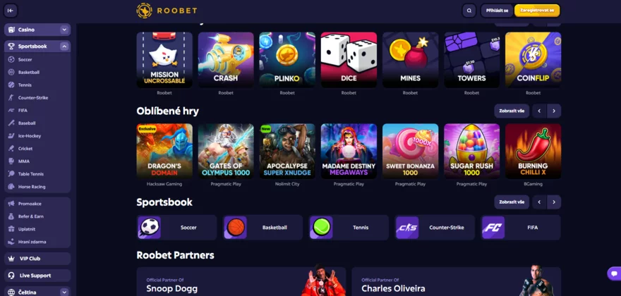 Kromě klasických casino her nabízí Roobet také unikátní hry, jako jsou Mines a Instant Dice, které přidávají do nabídky zajímavou variabilitu. Live casino hry jsou uváděny skutečnými dealery, což přináší autentický zážitek jako z opravdového casina.