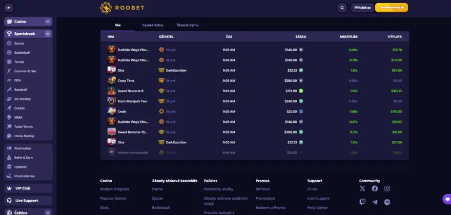 Roobet nabízí možnost vyzkoušet si většinu her v demo režimu, což je skvělá příležitost pro nové hráče, kteří si chtějí vyzkoušet různé hry bez rizika ztráty skutečných peněz. Tento režim umožňuje hráčům seznámit se s herními mechanikami, pravidly a bonusovými funkcemi, aniž by museli provádět vklad. Demo hry jsou dostupné pro většinu video slotů a některé stolní hry, tedy většinu her kromě Live casino her.