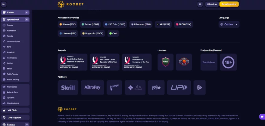 Roobet v ČR nemá licenci, ale přijímá české hráče. Dávejte si pozor, mohou vzniknout tyto následky.