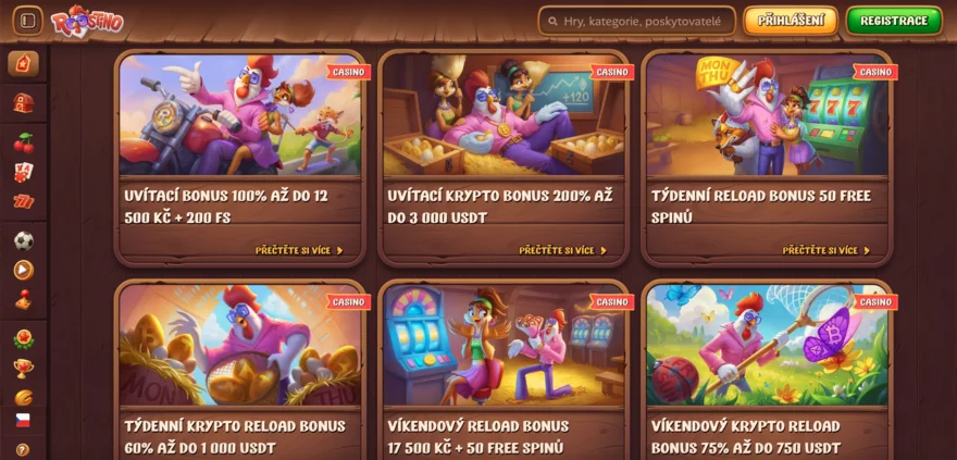 Roostino Casino je nové online casino spuštěné v roce 2025, které hráče vítá originální farmářskou tematikou a moderním designem. Toto herní prostředí působí svěže a zábavně – od maskota kohouta až po budování vlastní virtuální farmy díky věrnostním odměnám. Mezi nejzajímavější prvky patří unikátní Bonus Crab (bonusová funkce s možností vyhrát extra odměny) a propojení casinových her se sázkovou kanceláří na jedné platformě. V této recenzi se podrobně zaměříme na bonusy, herní nabídku, bezpečnost, mobilní zážitek, platební metody, podporu i dostupnost Roostino Casina pro české hráče.
