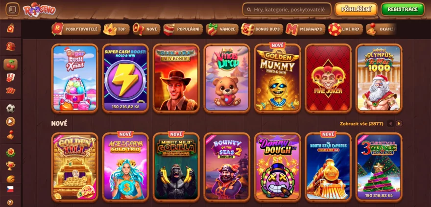 Herní katalog Roostino Casina patří k největším na trhu – čítá přes 10 000 her od automatů po živé stoly. Nechybí stovky výherních automatů, moderní video sloty (včetně Megaways a jackpotů) ani oblíbené stolní hry jako blackjack, ruleta či poker – a to jak v elektronické podobě, tak s live dealery. K dispozici jsou také crash games typu Aviator, bingo, keno či virtuální sporty, dokonce i sázky na eSporty přímo na platformě. Většinu titulů si můžete spustit i v demo verzi zdarma a vyzkoušet si hru nanečisto bez rizika prohry. Díky obrovské rozmanitosti si vybere každý, od milovníků klasiky až po fanoušky nejnovějších novinek, a ROostino se tak v tomto ohledu řadí mezi top zahraniční casina.