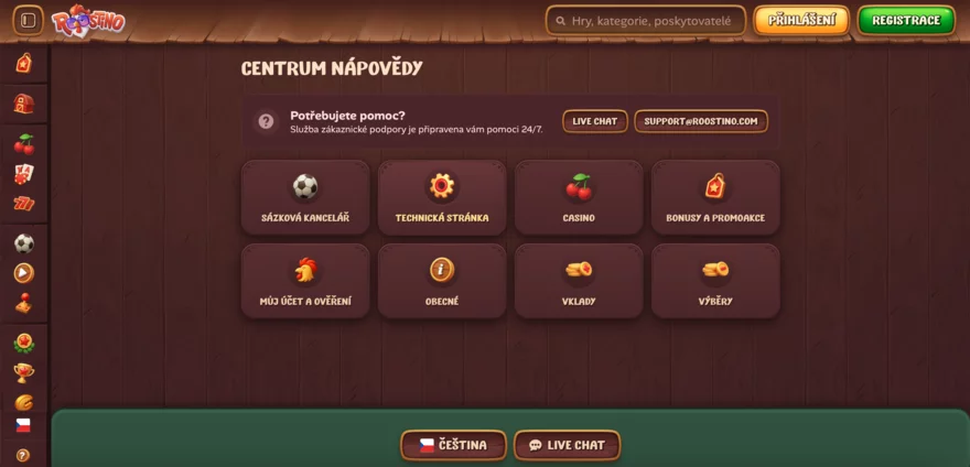 Kvalitní zákaznická podpora je pro online casino klíčová a Roostino v tomto směru nezaostává. Přímo na webu je k dispozici live chat podpora dostupná 24/7, takže pomoc získáte kdykoli. Operátoři reagují rychle a ochotně poradí s registrací, bonusy, platebními metodami či jakýmkoli problému při hře. Komunikace probíhá primárně v angličtině a dalších světových jazycích, což zajišťuje pomoc i mezinárodní klientele. Live chat je nejrychlejší způsob, jak vyřešit naléhavé dotazy – odpověď obvykle obdržíte během několika minut.