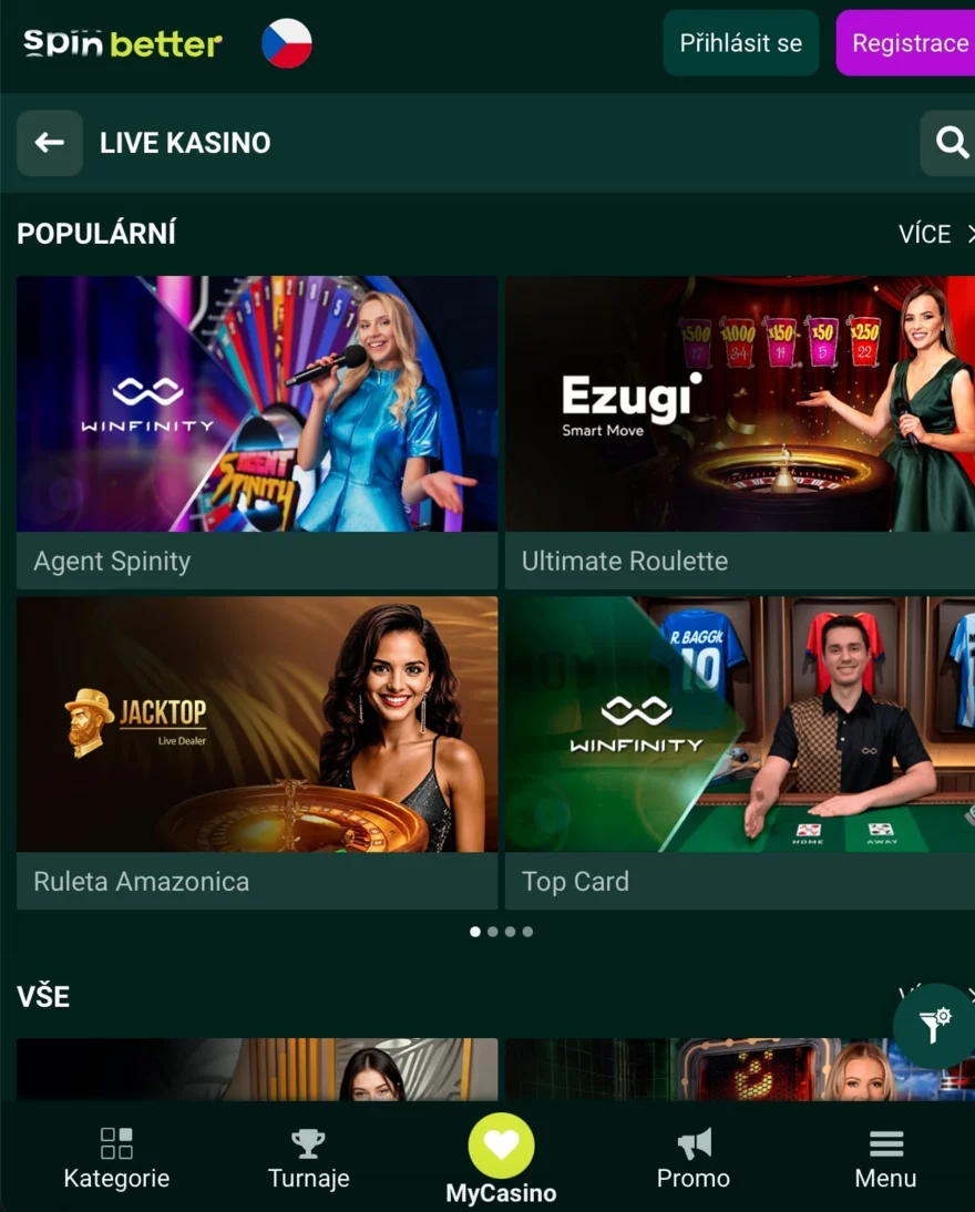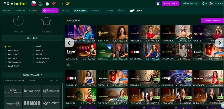 Poskytovatelé live her ve Spinbetter