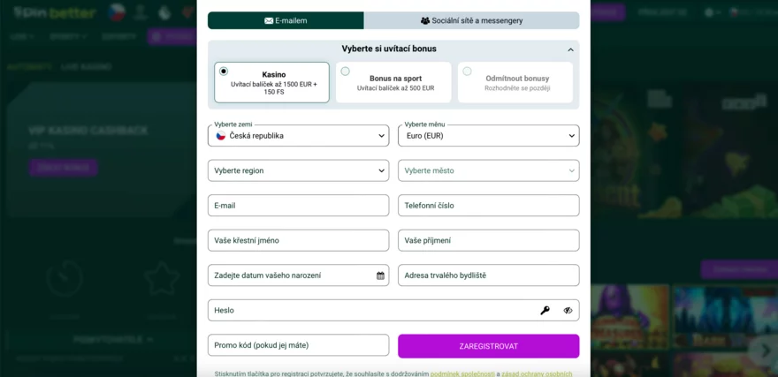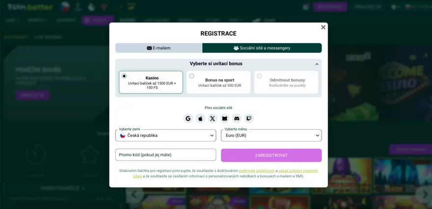 Jak na Spinbetter registraci z ČR?