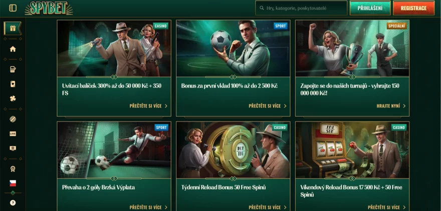 Mezi nejlepší akce patří víkendový reload bonus, který přináší až 17 500 Kč a 50 free spinů. Tento bonus je ideální pro hráče, kteří si chtějí zpříjemnit víkend hraním a současně získat výhodu navíc. Pro získání volných zatočení je potřeba vložit minimálně 1 200 Kč, zatímco samotný peněžní bonus je dostupný už od 500 Kč. SpyBet tak dává šanci i hráčům s menším rozpočtem.