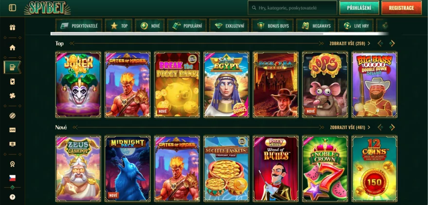 Slotová sekce SpyBet casina je jako splněný sen pro milovníky výherních automatů. Najdete zde klasické 3válcové automaty, moderní 5válcové video sloty, ale také oblíbené Megaways hry, které mění počet výherních linií s každým spinem. Nechybí ani Bonus Buy automaty, kde si můžete bonusovou funkci koupit přímo, a samozřejmě progresivní jackpoty s potenciálem na výhry v milionech korun.