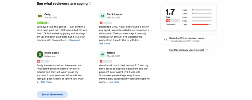 Varováním však zůstává, že některé recenze na nezávislých fórech poukazují na problémy s vyplácením výher, a ne všechny stížnosti jsou řešeny. Na webu AskGamblers si TikiTaka vysloužilo hodnocení pouhých 3,6/10, zatímco na Trustpilot ho lidé ohodnotili 1,7 body z 5, což svědčí o přetrvávajícíhc problémech v určitých oblastech. Na druhou stranu, casino nemá žádné významnější skandály, je plně licencované, a nabízí výhody, které čeští hráči v lokálních casinech jednoduše nenajdou. Jeho relativní novost ale znamená, že dlouhodobá důvěryhodnost ještě není plně ověřena.