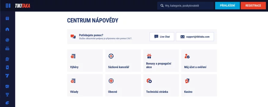 Zákaznický servis casina TikiTaka je dostupný nonstop prostřednictvím dvou hlavních kanálů: rychlého živého chatu a e-mailové podpory (support@tikitaka.com). Reakční doby jsou obvykle velmi krátké – u živého chatu se pohybují v řádu minut, zatímco e-mailové dotazy jsou řešeny do 24 hodin. Klíčovou výhodou pro české hráče je dostupnost komunikace v češtině, která odstraňuje potenciální jazykové bariéry a zjednodušuje řešení případných problémů.