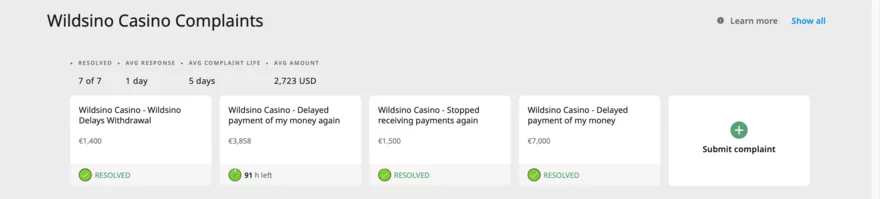 Na Trustpilot získalo Wildsino Casino skóre 4.1/5, což je solidní hodnocení, které ukazuje, že většina hráčů je spokojena s jeho službami. I přesto, že některé recenze upozorňují na problémy s výběrem, většina stížností je konstruktivní a vztahuje se na drobné problémy, které byly řešeny. Casino se aktivně vyjadřuje k těmto stížnostem a snaží se situaci vylepšit.
