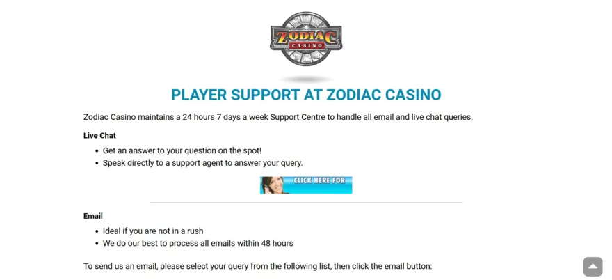 Závěrečné hodnocení zákaznické podpory Zodiac Casino
