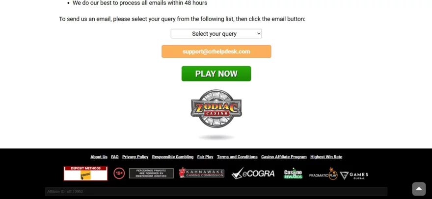 Nenechte se zmást adresou, která neobsahuje slovo „Zodiac“. Tato podpora je centralizovaná pro celou síť kasin spadajících pod Casino Rewards, což zaručuje, že váš e-mail skončí v rukou profesionálů, kteří mají s řešením problémů bohaté zkušenosti.