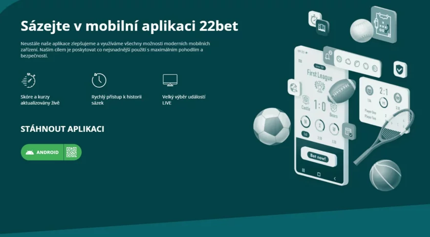 Platforma 22Bet nabízí plně responzivní mobilní web, který funguje bezchybně na jakémkoli zařízení, ať už používáte iOS 🍏 nebo Android.🤖 Nemusíte nic stahovat – stačí otevřít prohlížeč na svém telefonu nebo tabletu a přístup ke všem funkcím máte okamžitě po ruce. Pro ještě pohodlnější použití si můžete vytvořit zástupce na domovské obrazovce, který vás s jedním kliknutím přesměruje na platformu.
