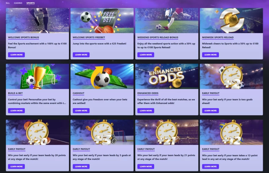 📌 Víkendové a týdenní reload bonusy: Každý týden i víkend mohou aktivní hráči získat až 100 € navíc za své vklady pro sportovní sázení formou 50% reload bonusů.