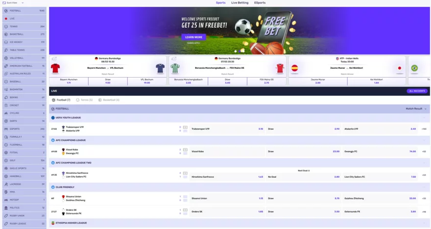 ➕ Sázkaři zde najdou nejen hlavní ligy a turnaje, ale i nižší soutěže a okrajové události, které u konkurence často chybí. Přestože platforma není v češtině, Foggybet nabízí sázkové příleřitosti i na české ligy pro místní fanoušky. Kurzová hladina není dohledatelná, ale podle nabídky se dá považovat za konkurenceschopnou.