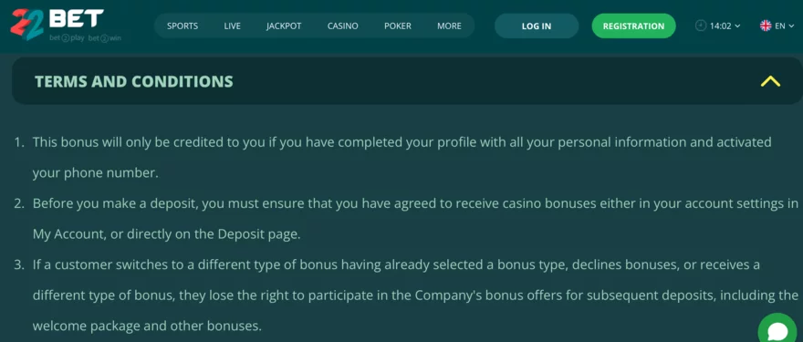 Dodatečné podmínky – např. u 22Bet a dalších vyžaduje casino spínací kód z bonusového kalendáře, který musíte aktivovat. Jinde zase třeba poskytnout identifikaci nebo se zúčastnit nějakého on-line nástroje (Telegram, e-mail).